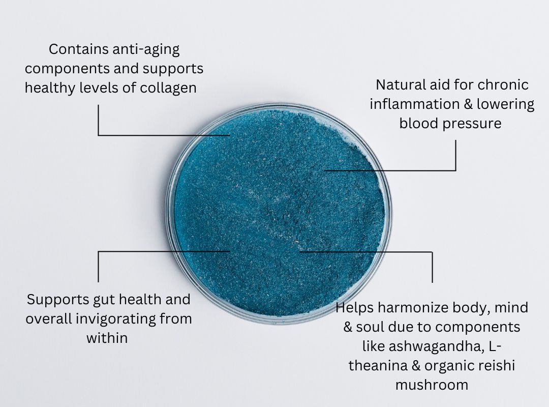 Organic Pea Flower, Organic MCT Oil, Blue Spirulina, Organic